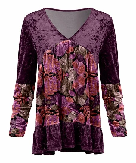 Crafted from soft velvet and starring a bold print, this lively tunic is ready for pairing with your favorite pants.