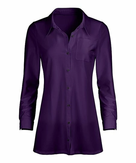 Button up your everyday style with this comfortable stretch-enhanced tunic featuring a thoughtfully placed pocket and flattering hue.