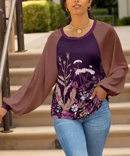 Lily | Purple & Taupe Floral Raglan Tunic – Women