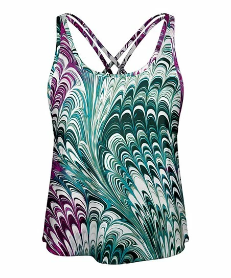 Keep your workout-ready looks fresh with this flowy, stretch-blend tank that boasts stylish crisscross back straps.