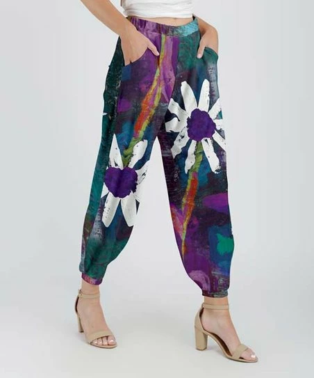 Lily | Purple & Teal Floral Brushstroke Pocket Joggers – Women