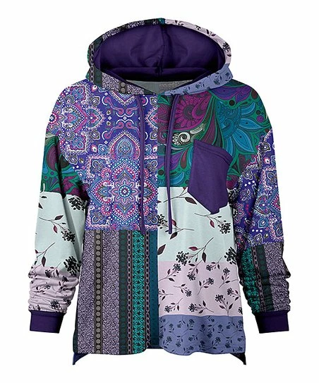 Lily | Purple & Teal Floral Patchwork Loose Fit Pocket Hoodie – Women & Plus
