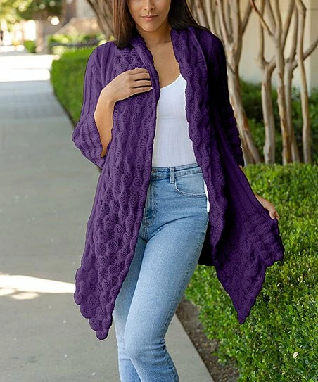 Increasing the cozy factor of your ensembles is as simple as slipping on this cardigan made of textured fabric. An open front provides a peek at what lies beneath.