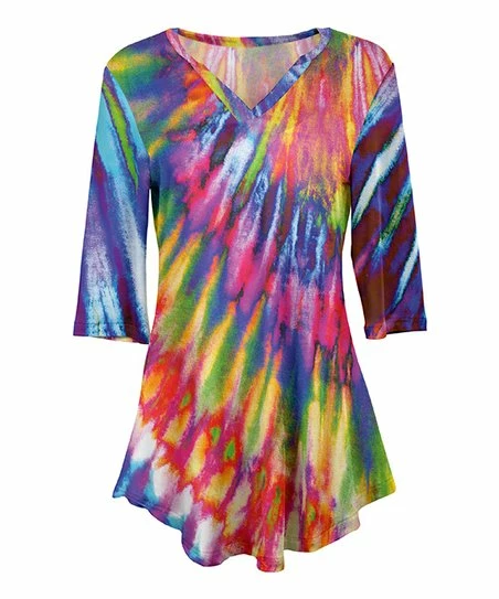 Whether paired with leggings or jeans, this lightweight tunic brings modern style to your casual look with its tie-dye motif.