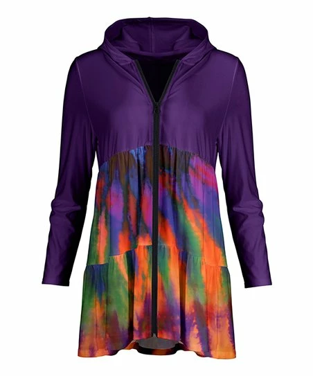 Mix up your casual picks wearing this stretch-blend hoodie updated with a tiered design and elongated silhouette that add feminine flavor.