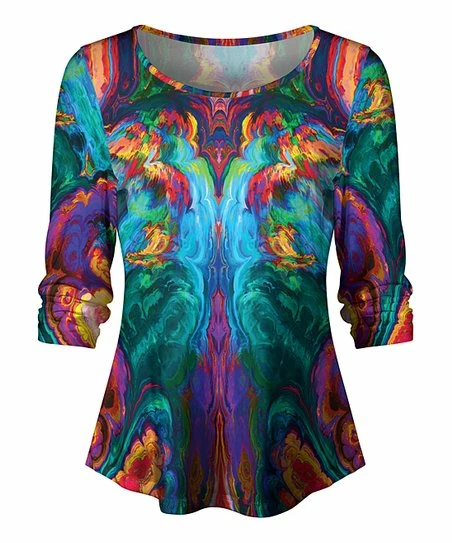 This top features comfy stretch-infused fabric, a wide boatneck and a vivid print.