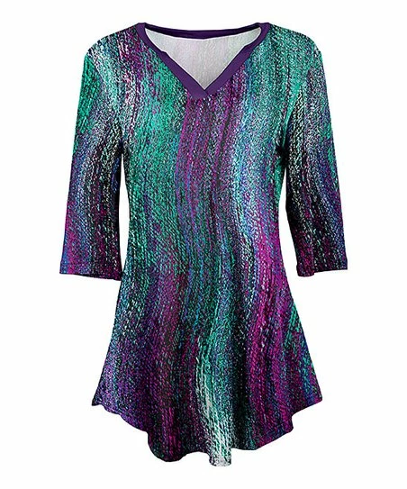 Garner a great deal of attention when you make this eye-catching three-quarter sleeve tunic part of your closet’s creations.