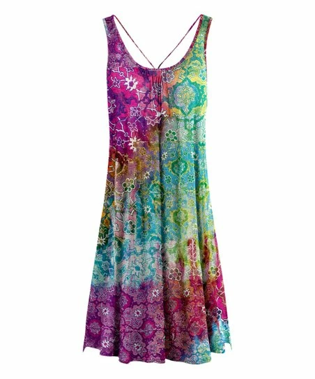 Lily | Purple & Turquoise Floral Crisscross-Back Sleeveless Dress – Women
