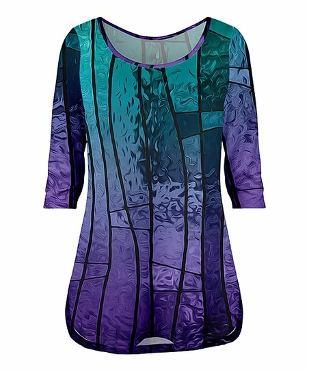 Define your wardrobe with the dynamic print featured on this scoop neck tunic finished with a curved hemline and a hint of stretch in the fabric for a feel-good fit.