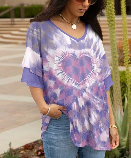 This flowy tunic offers effortless style with a classic v-neck, bold pattern and layered bell sleeves.