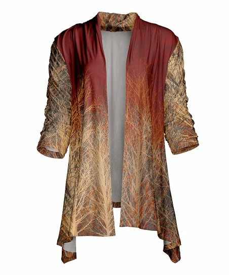 Wrap yourself in chic comfort with this patterned cardi featuring a funky asymmetrical hem and stretch-enhanced material for all-day easy wear.