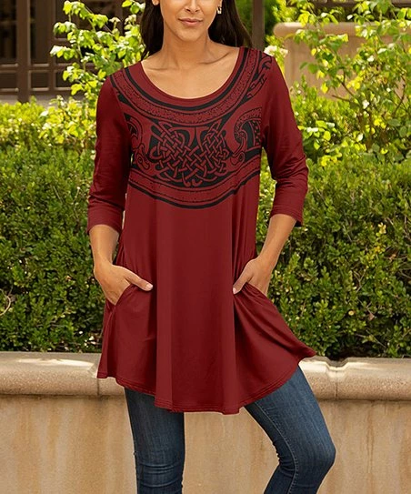 This flowy tunic features a swing hemline, a flattering scoop neck design and handy pockets.