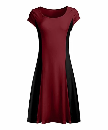 Stay comfy in this cap-sleeve dress featuring stretch-enhanced material and a statement pattern.