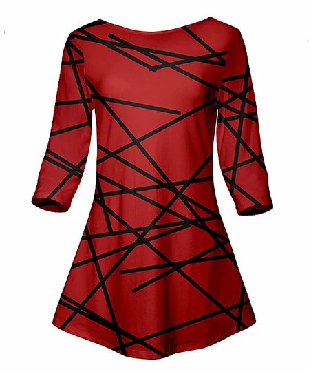 Three-quarter sleeves and a flowy fit lend lasting comfort to this eye-catching tunic in a bold print.