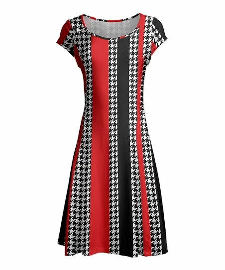 Lily | Red & Black Houndstooth Stripe Cap-Sleeve Dress – Women & Plus