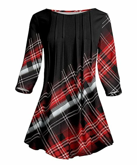 Pleats along the neckline create a front-flattering look to this fluid tunic that’ll go with your favorite skinny jeans or leggings.