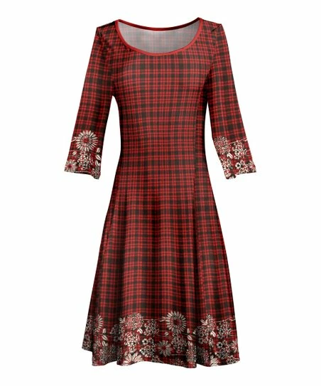 Go for a casually graceful look in this patterned A-line dress featuring a sweeping boat neckline and long sleeves to keep you covered.