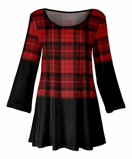 Turn heads as you cruise through the weekend wearing this scoop neck tunic that flaunts a wow-worthy print while delivering the coverage of three-quarter sleeves.