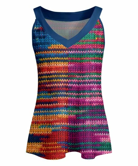 Lily | Red & Blue Abstract Lines V-Neck Tank – Plus