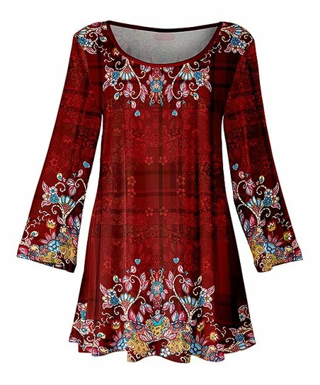 Boasting a fun and flowy fit, this comfy tunic features stretch-enhanced fabric and a unique pattern that’ll instantly revamp your casual closet.