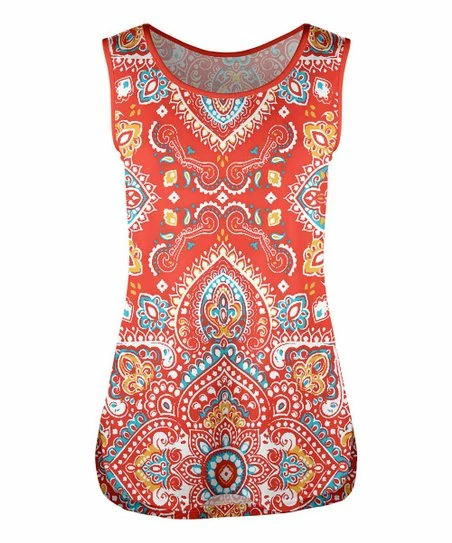 Liven up your warm-weather repertoire with this scoop neck tank in a get-noticed print. A slit curvy hem brings it to a shapely finish.