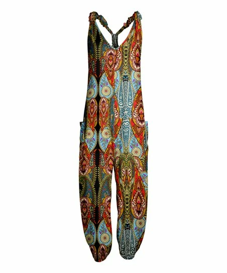 Lily | Red & Blue Paisley Pocket Sleeveless Jumpsuit – Plus