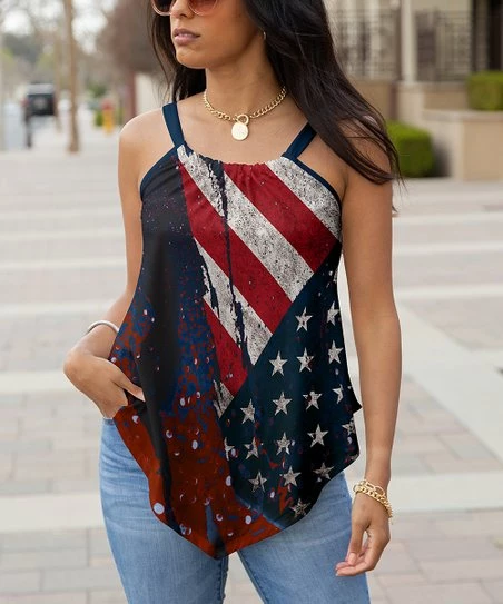 Guaranteed to bring you into a room in breezy style, this bold tunic features a cool sleeveless cut with a triangle-hem for a flowy finish.
