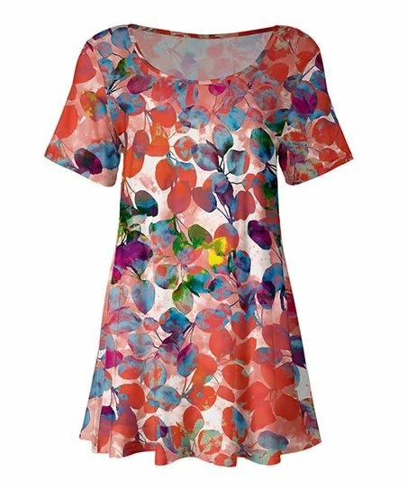 Take on sunny days by opting for this flared scoop neck tunic that displays a dramatic print while delivering the breezy comfort of short sleeves.