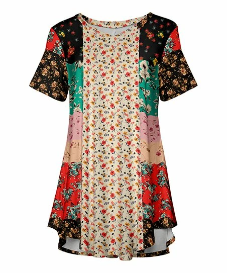 Made with soft, lightweight fabric and a relaxed silhouette, this tunic boasts a wide v-neckline and a fluttering hem for a feminine touch.