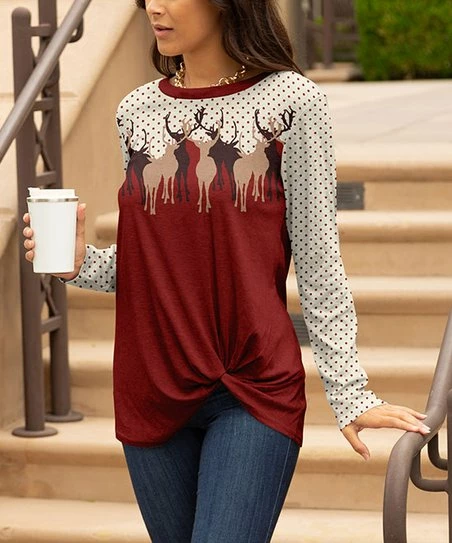 Spruce up your relaxed ensembles with playful pizzazz by donning this stretch-blend tunic adorned with a festive print and long sleeves for warm coverage.