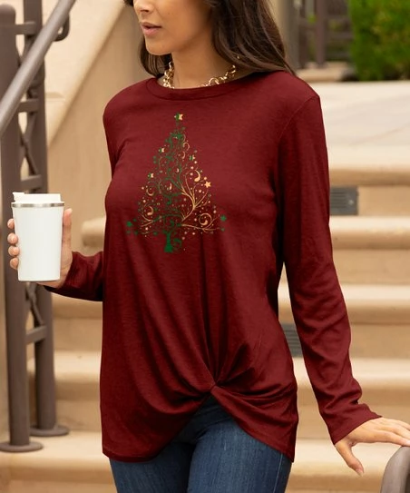 Ease through the day in this relaxed tunic that features stretch-enhanced material and long sleeves for full coverage. A twist accent adds graceful detail to the hem, and an eye-catching print adds a pop of personality.