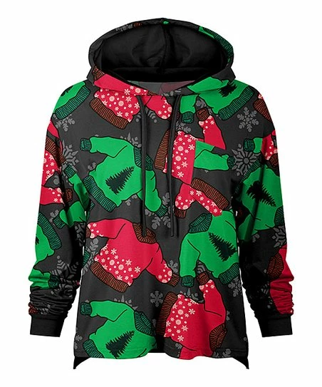 You’ll be both comfy and holiday-ready when you sport this cozy pullover that boasts a festive design and stretch-enhanced fabric.