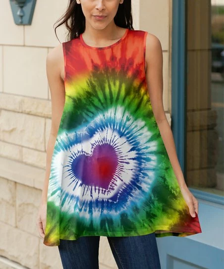 Greet warm weather in artsy fashion wearing this breezy sleeveless tunic decked out in a get-noticed print. A crewneck works well with many necklaces for effortless accessorizing.