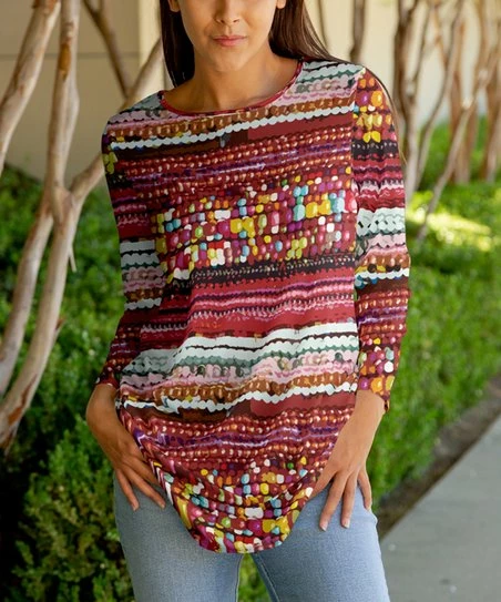 Stand out as you stroll through chilly landscapes wearing this crewneck tunic, boasting a dramatic print and cozy long sleeves.