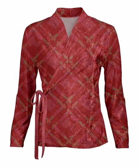 Opt for sophisticated style in this top boasting eye-catching velvet and a flattering wrap style. A dose of stretch in the material promises enhanced comfort.