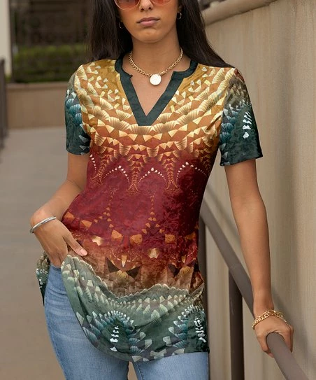 Go for a luxe look in this velvet tunic featuring cool short sleeves and a hint of stretch.