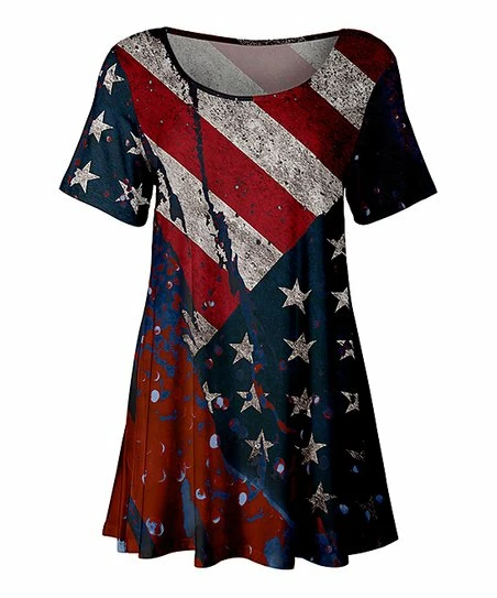 Pair your go-to denim or leggings with this breezy short-sleeved tunic that features a distressed starry print and a generous scoop neckline for your best-loved bauble.