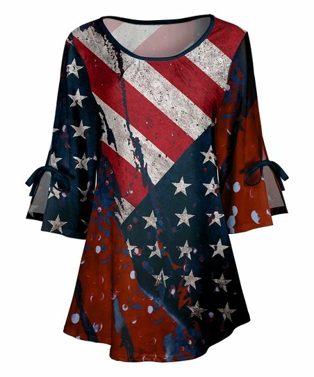 Give your wardrobe a refresh with the cheerful print of this stretch-infused tunic designed with trendy sleeve ties and a round neckline.