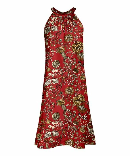 Make a memorable impression wearing this flattering stretch-knit dress that shows off a dramatic print and polished halter neck.