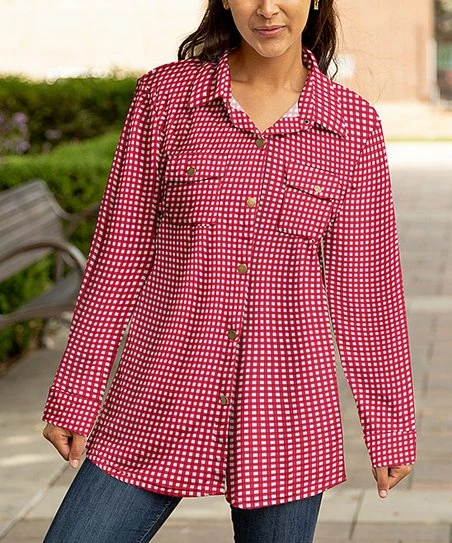 Lily | Red & White Check Chest-Pocket Shacket – Plus