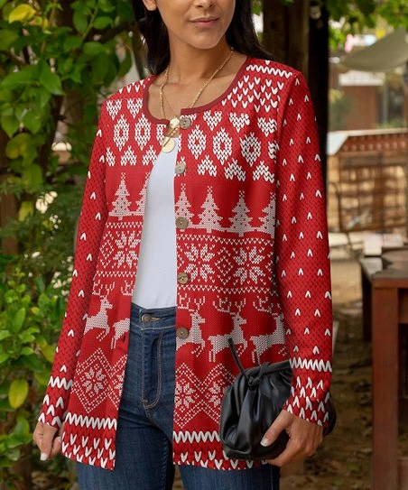 Long cardigan featuring a crew neckline and crafted from stretch-enhanced fabric.
