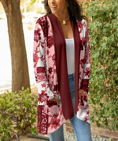 Lily | Red & White Floral Pocket Open Cardigan – Plus