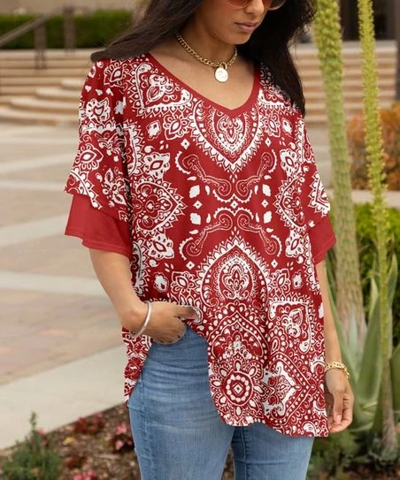 Stretch-kissed tunic featuring a plunging v-neckline to frame your favorite pendant.