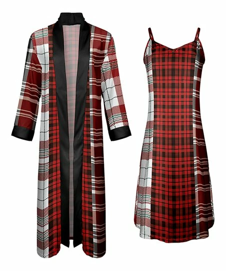 - Includes red and white plaid open robe and nightgown (two pieces total)
