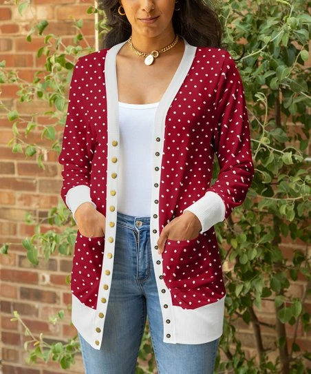 Flowy cardigan featuring front pockets and metallic snap closures.