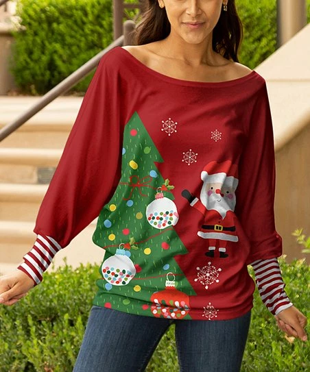 A relaxed-fit boatneck tunic with bishop sleeves and festive print.