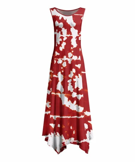 Lily | Red & White Tie-Dye Sleeveless Handkerchief Maxi Dress – Women & Plus