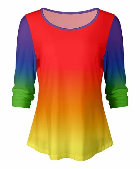 Casual boatneck top featuring a colorful design and light, stretch-friendly fabric.