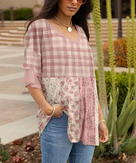 Tiered ruffle sleeves adorn this stretch-infused tunic fashioned with a deep v-neckline.