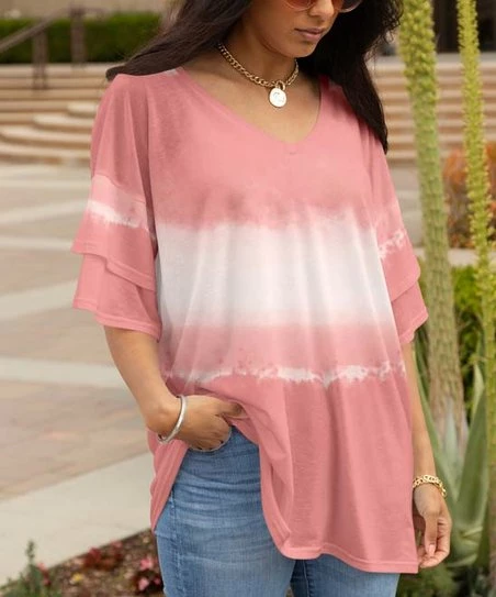 Elevate your everyday look with this roomy v-neck tunic that boasts layered half-sleeves and an eye-catching print for added casual flair.